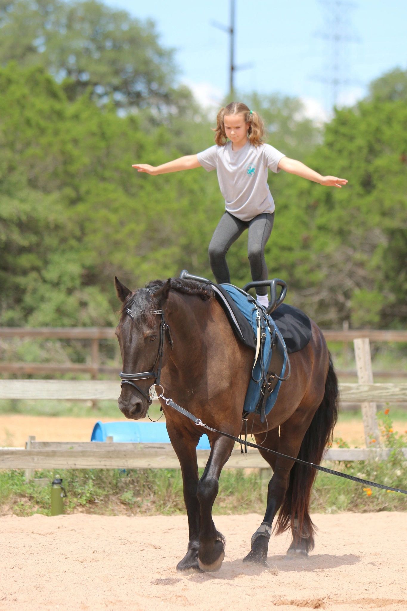 Mythic Vaulters has been a place for Austin area vaulters to grow strong and confident since 2020. Coach and Longeur Melissa Lester fell in love with the sport of vaulting as a teen in Virginia and rediscovered it as a coach and longeur while living in Austin, TX. She has trained several horses for vaulting as well as dressage. Her passion is to instill in her students love and respect for their horses, teammates, and themselves. Vaulting is for everyone, and Melissa is passionate about teaching students of all ages and skill levels.